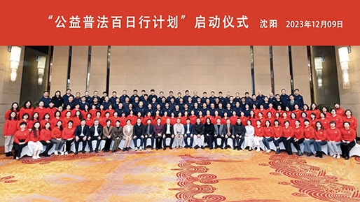 12月9日税盟与郭明义爱心团队公益普法分队主办的“公益普法百日行计划”在沈阳举行启动仪式,郭明义副主席到场致辞。