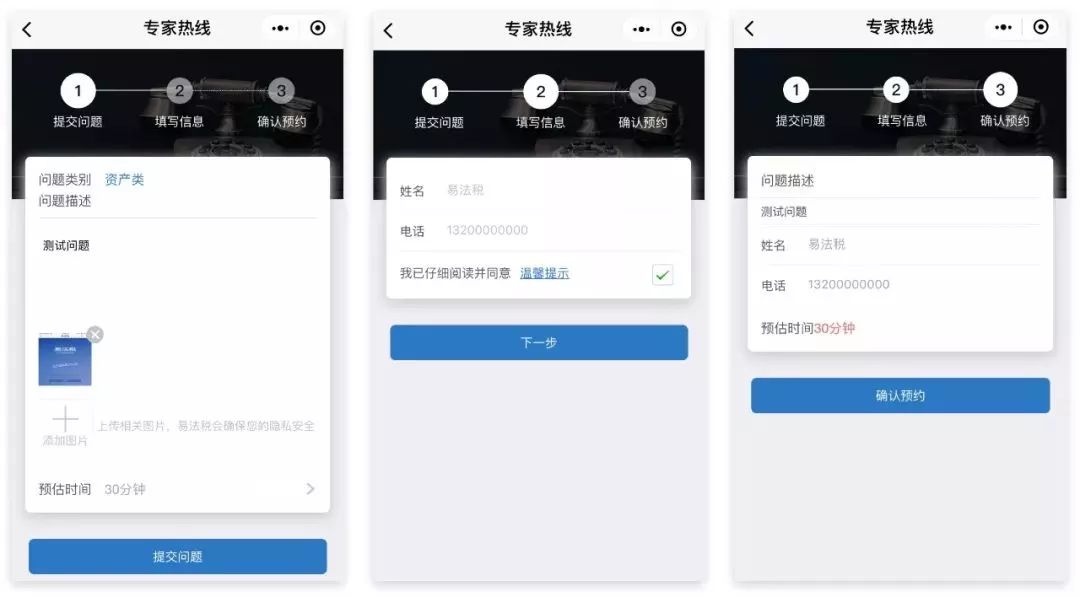 ⑥确认信息无误后点击确认预约即预约成功,请耐心等候专家致电为您解答问题。