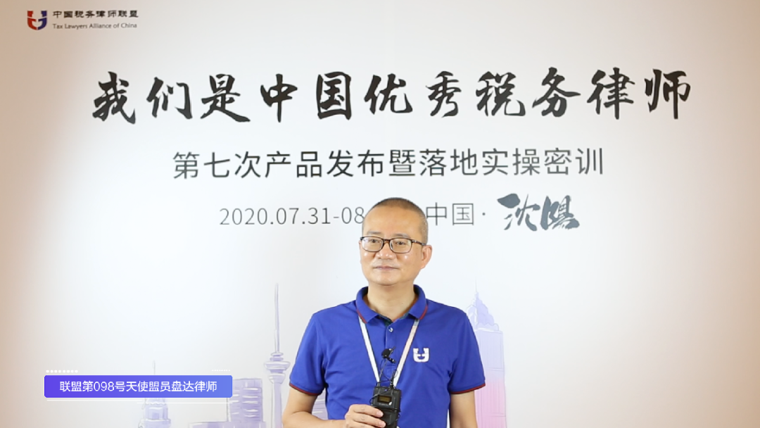 盘达律师:我是第六次产品发布会的现场观摩成员,听完盟主的课程之后,我当天就选择加入了中国税务律师联盟。听完这次盟主的课程,我更加感受到盟主的前瞻性、专业性,给传统的红海业务带来了很大的突破。打破了我们在红海领域中的瓶颈。希望通过联盟科学的培养模式,能让自己从一个税收法律服务业务的门外汉,进阶成为专业优秀的税务律师。