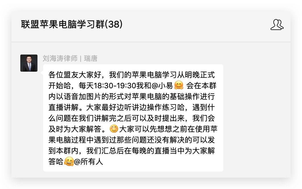 [ 税务律师联盟技能培训 ] 苹果mac电脑学习微信小课堂开课了~