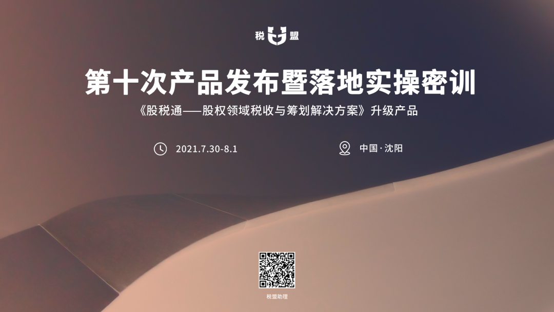 税盟定于2021年7月30日至8月1日,在辽宁沈阳举办第十次产品发布暨落地实操密训。