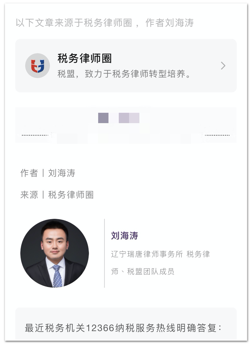 「税务律师圈」的文章,欢迎大家阅读、转发、分享。本转载须知仅针对公众号及其它信息平台的转载,不针对个人转发及分享朋友圈。