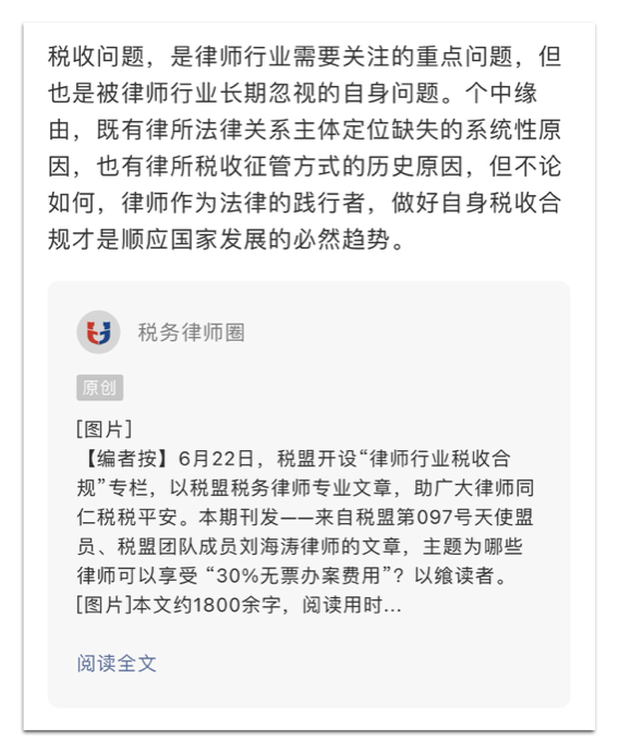 1.如只需原文分享「税务律师圈」原创文章,请直接使用分享格式,公众号会自动生成分享样式。