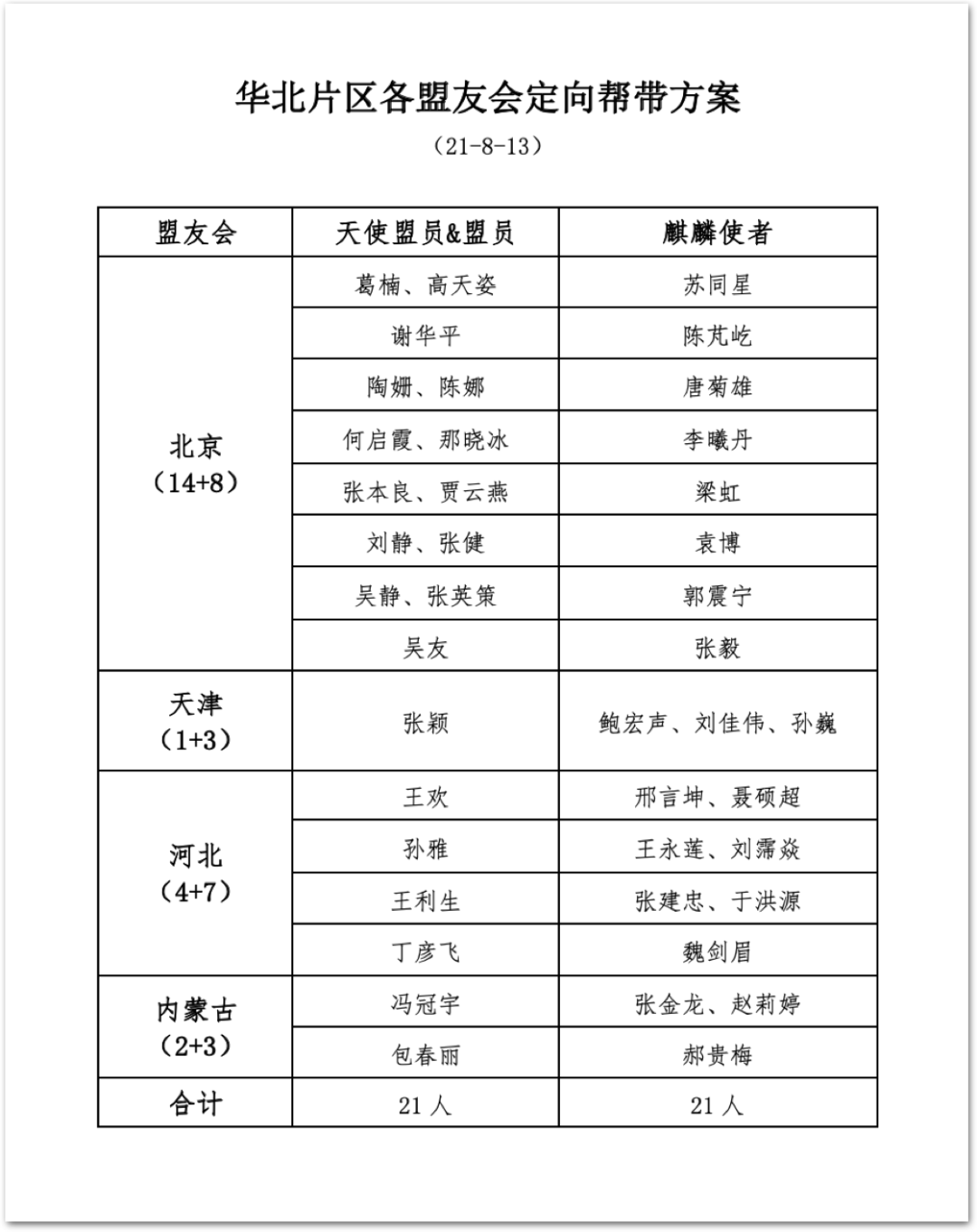 <例:华北片区帮带方案>