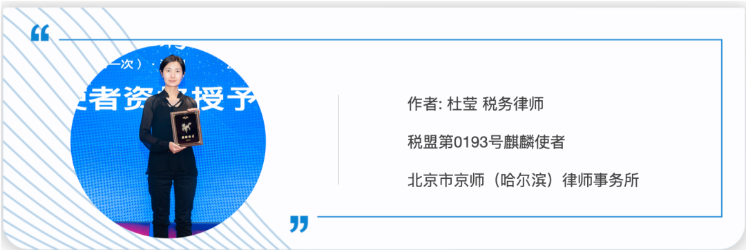 本期作者:税盟第0193号麒麟使者杜莹律师