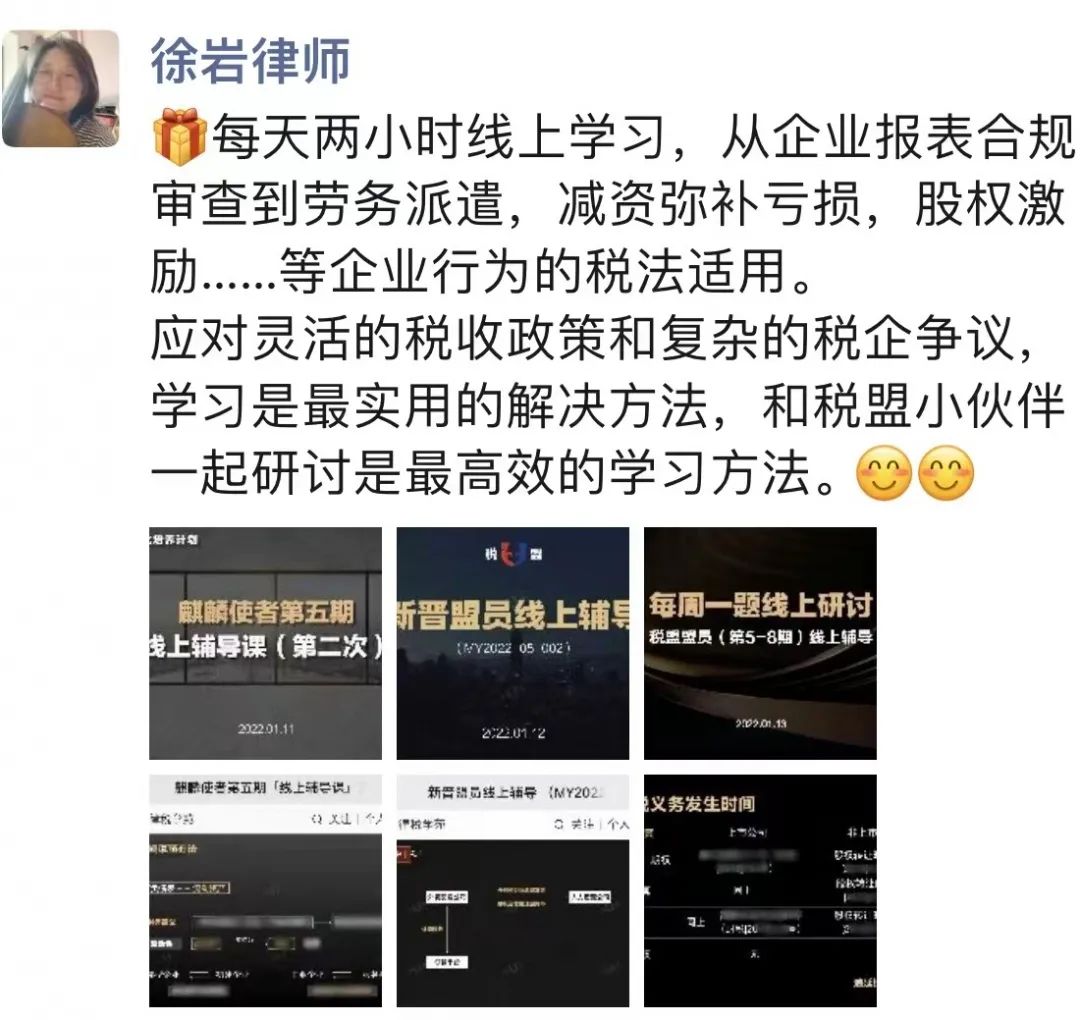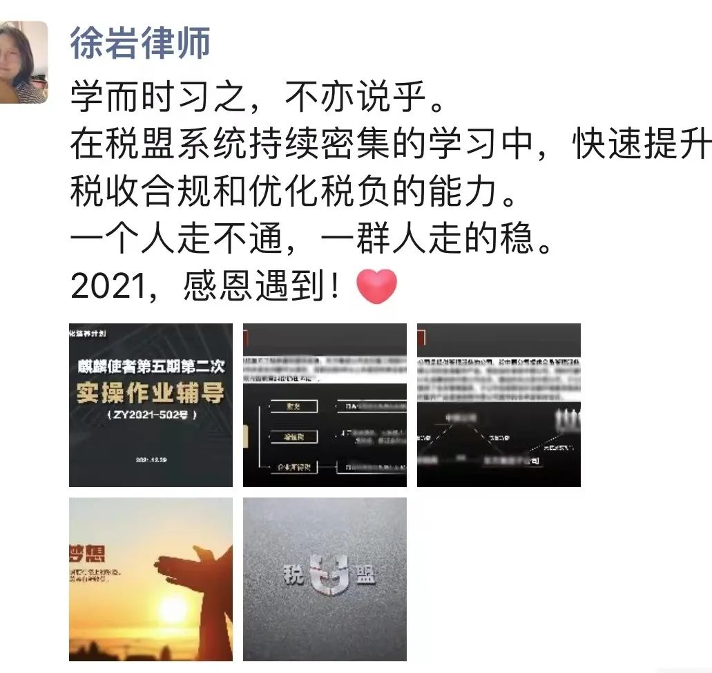 我很想知道,是什么样的一个税盟,让一向工作严谨、思维缜密、行事低调的那律师,每天不间断地发送与税盟有关的动态,持续分享在税盟的学习收获?