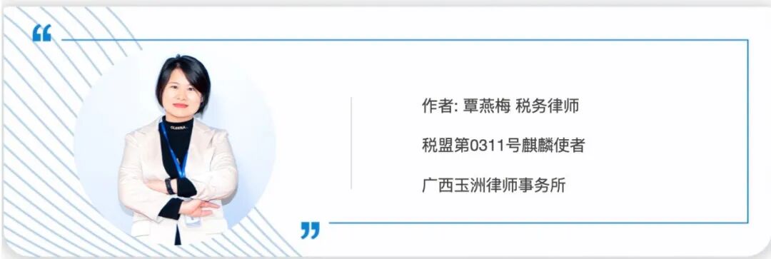 本期作者:税盟第0311号麒麟使者覃燕梅律师
