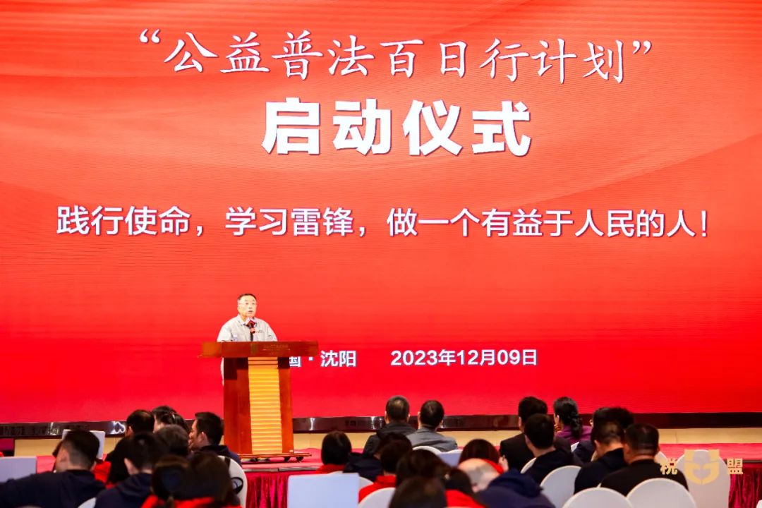 2023年12月9日,由鼎兴普法公益基金、沈阳税盟教育科技有限公司、郭明义爱心团队公益普法分队主办的“公益普法百日行计划”在沈阳举行启动仪式。
