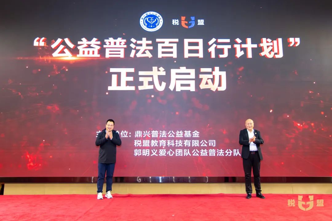 在大家的共同见证下,郭明义爱心团队联盟秘书长朱国秀与郭明义爱心团队公益普法分队总顾问、税盟转型导师陈春林共同启动“公益普法百日行计划”。