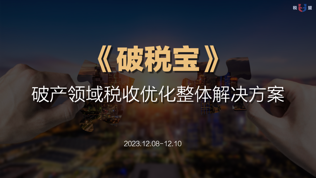 结合最新的税收政策,从企业破产形式的商业、法律和税收角度出发,实现最新的税收政策和热点话题完美融合,旨在帮助盟员持续加强税法分析思维,提升税务合规与优化实务技能。