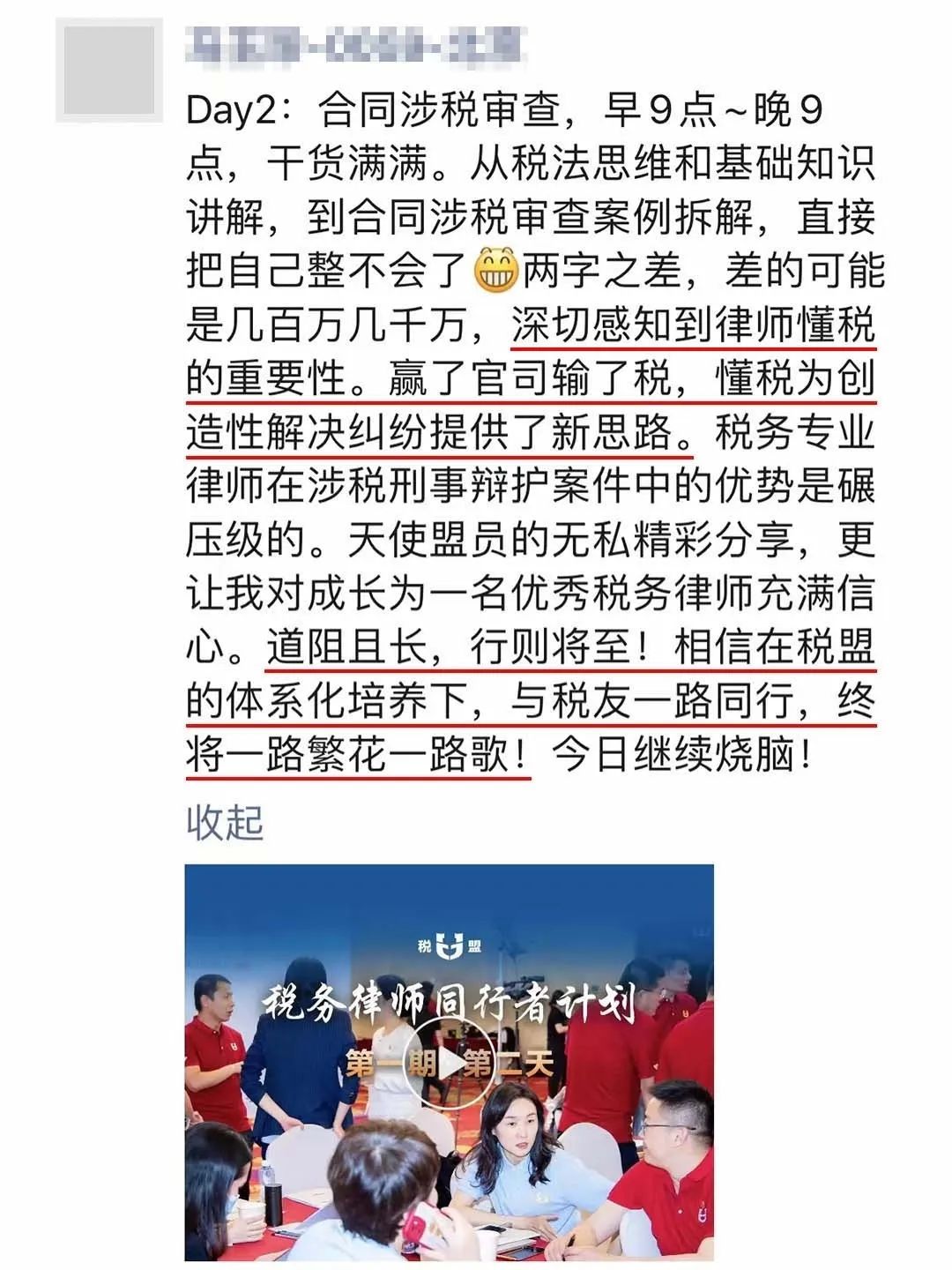 “深刻感知到律师懂税的重要性,赢了官司输了税,懂税为创造性解决问题提供了新思路。”
