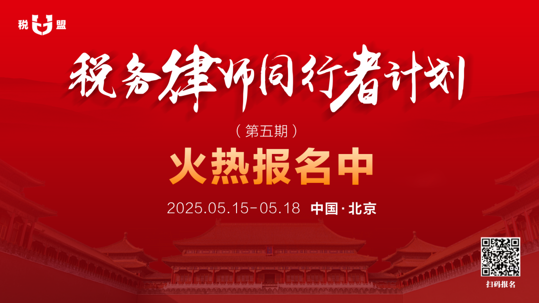 税务律师同行者计划第五期将在北京开课,这也是税盟发展上的重大调整,我期待与各位同仁北京见!