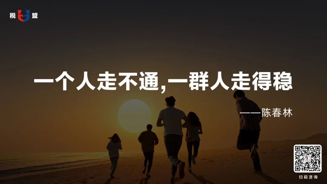 陈春林导师经常告诉我们“一个人走不通,一群人走得稳”。为了让我们转型之路更加顺畅,税盟为我们建立“共生共荣发展生态圈”。发挥“共生”(个体与组织共同生存)与“共荣”(资源与成果共享)的巨大作用,通过系统化培养、互助合作、资源共享,解决伴随律师转型税务律师而产生的孤立这一痛点。
